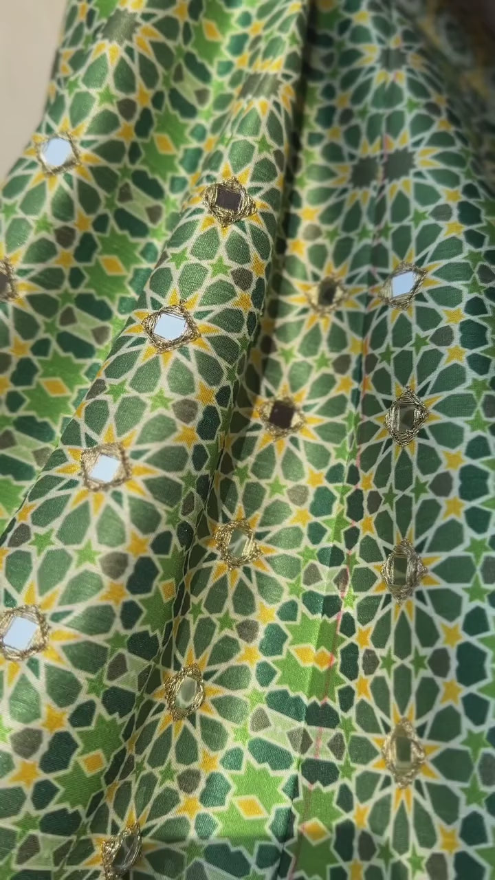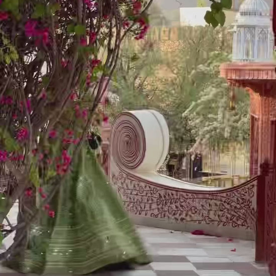 Embroidered Dupion Lehenga set is handcrafted with mirror-work all over featuring organza dupatta with sequin, nalki, dabka and nakshi work.